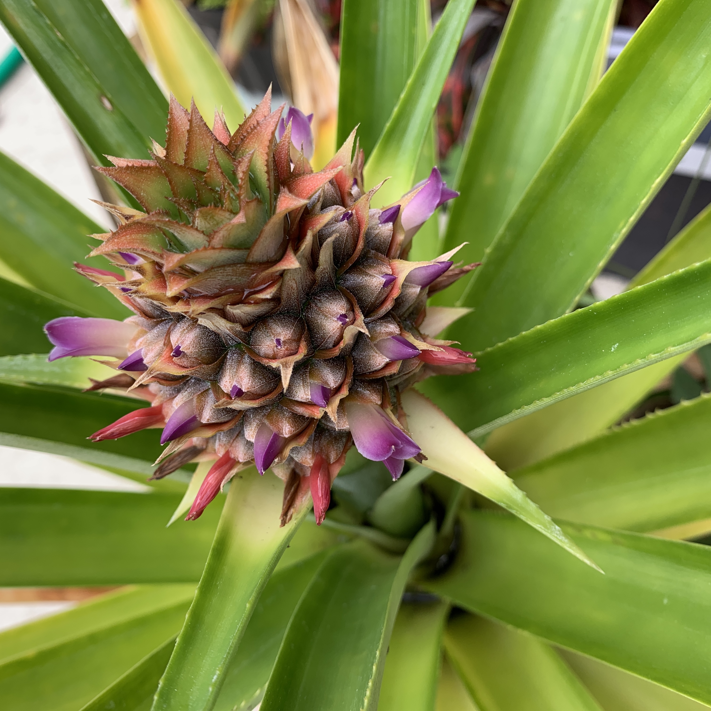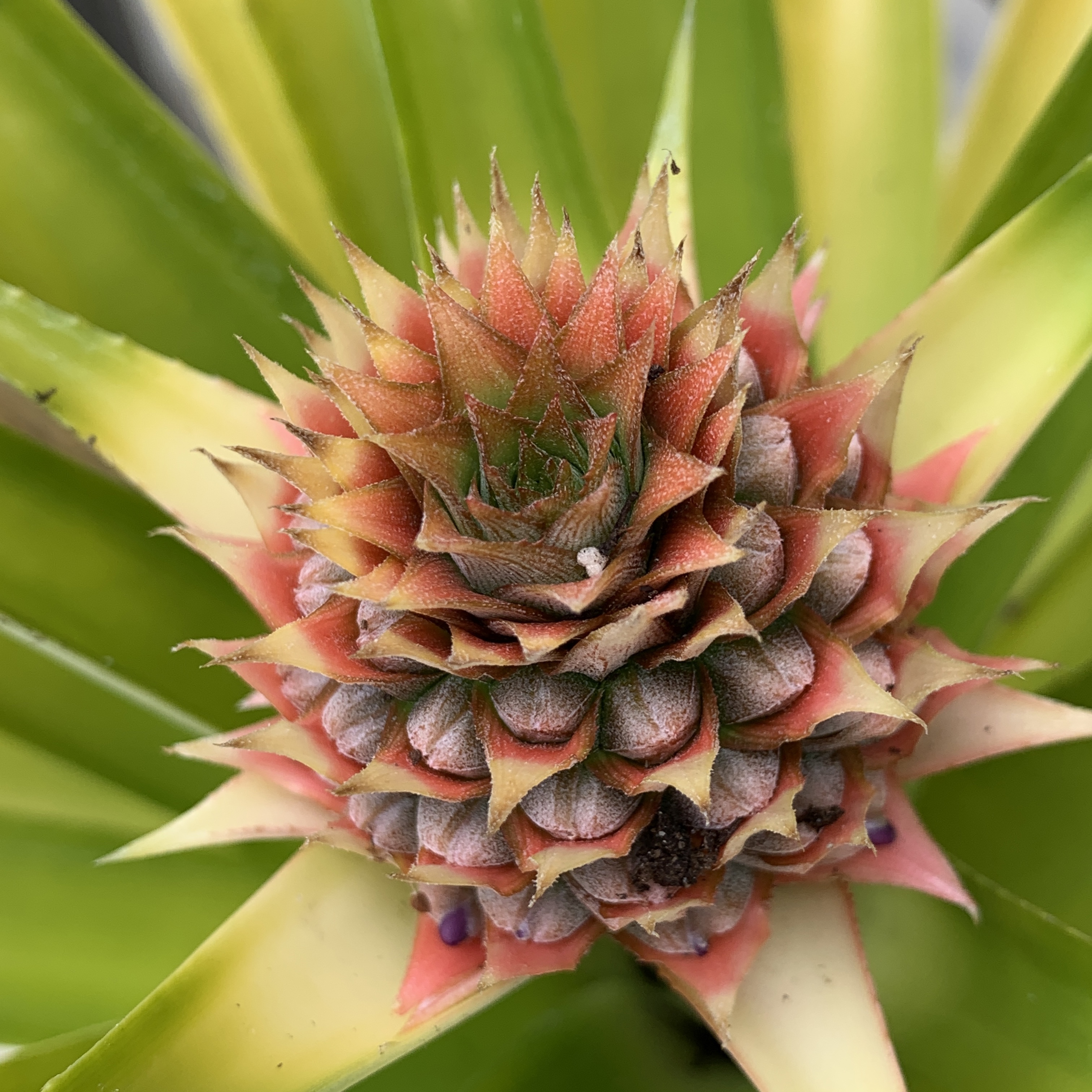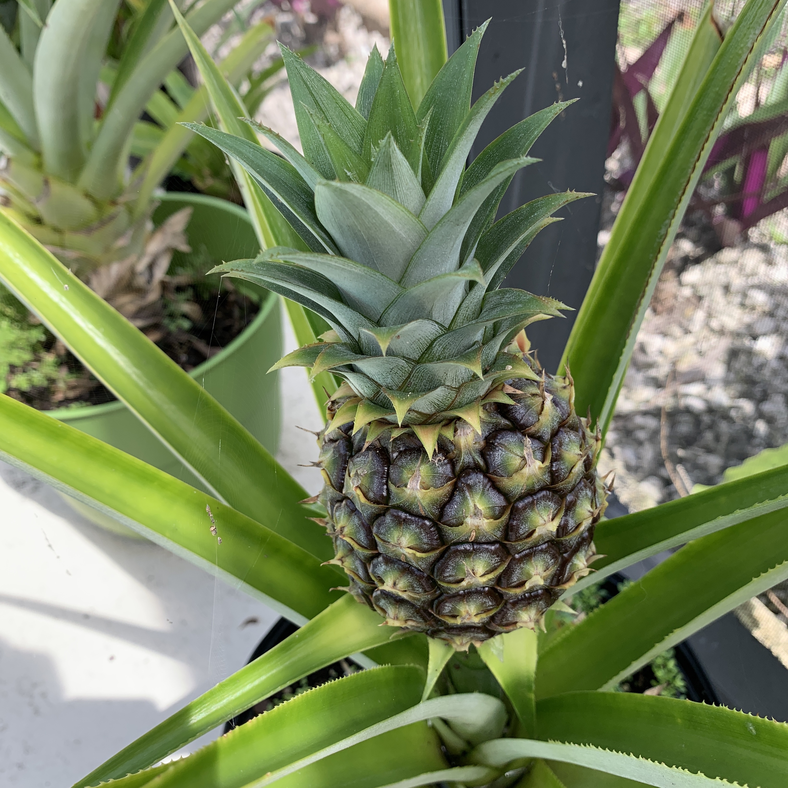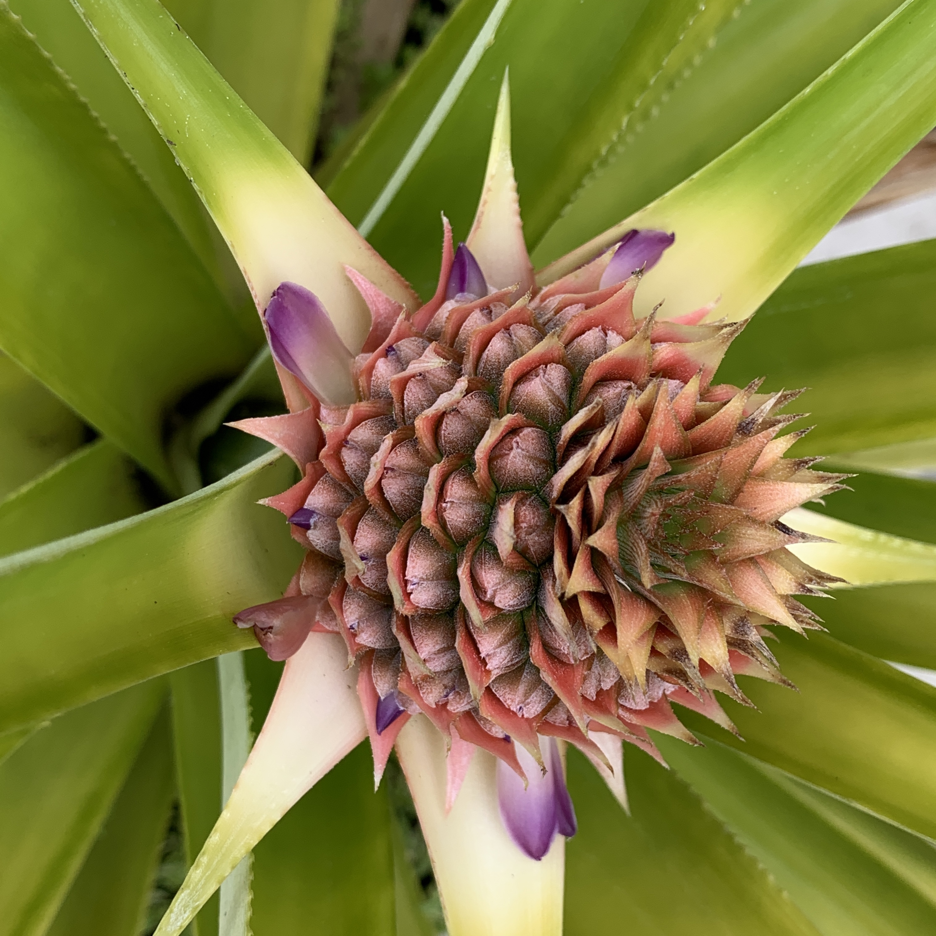 My mother and I have been growing pineapple plants for some time now, and have quite a few, of varying sizes. They are such beautiful plants, so architectural, and even better when they start fruiting.
