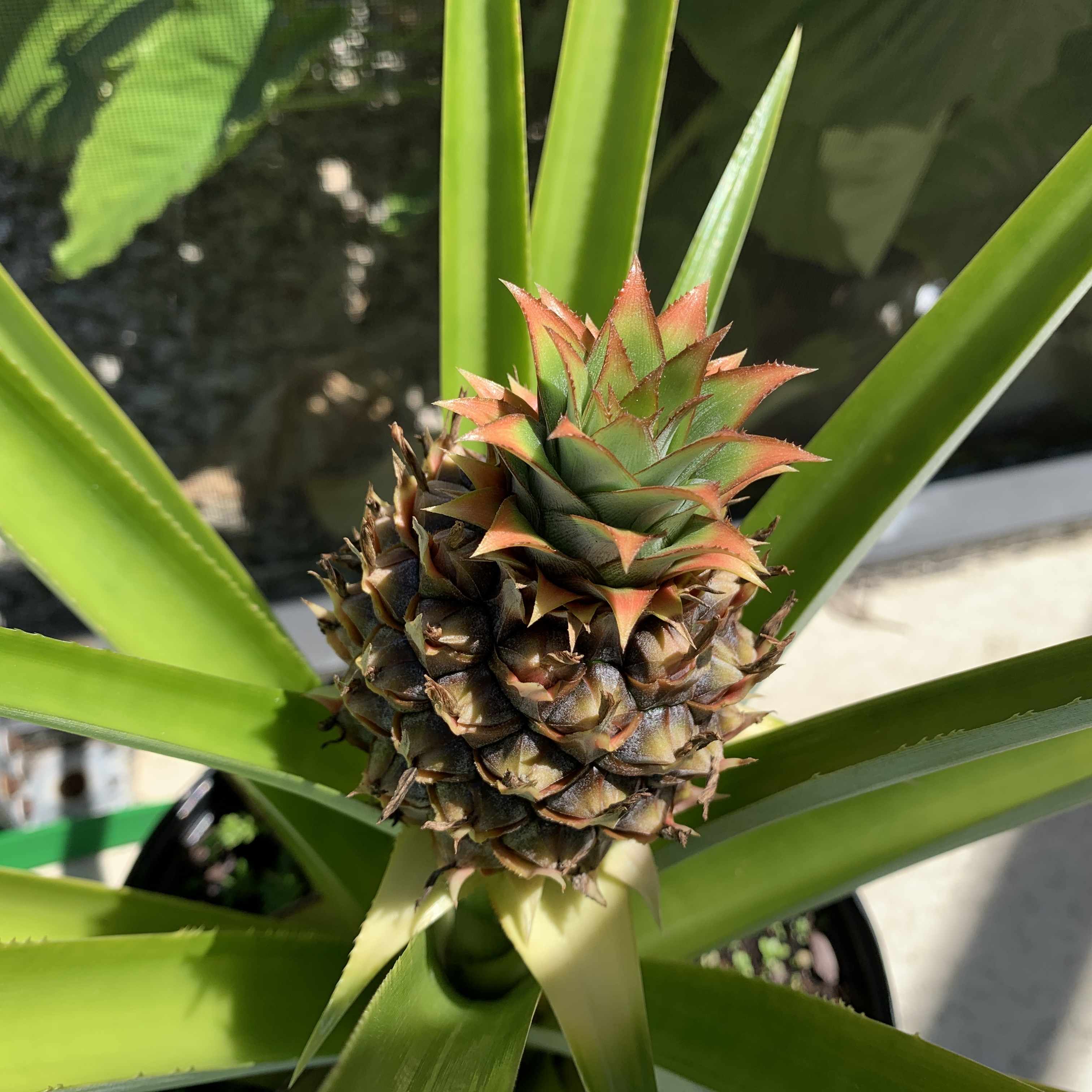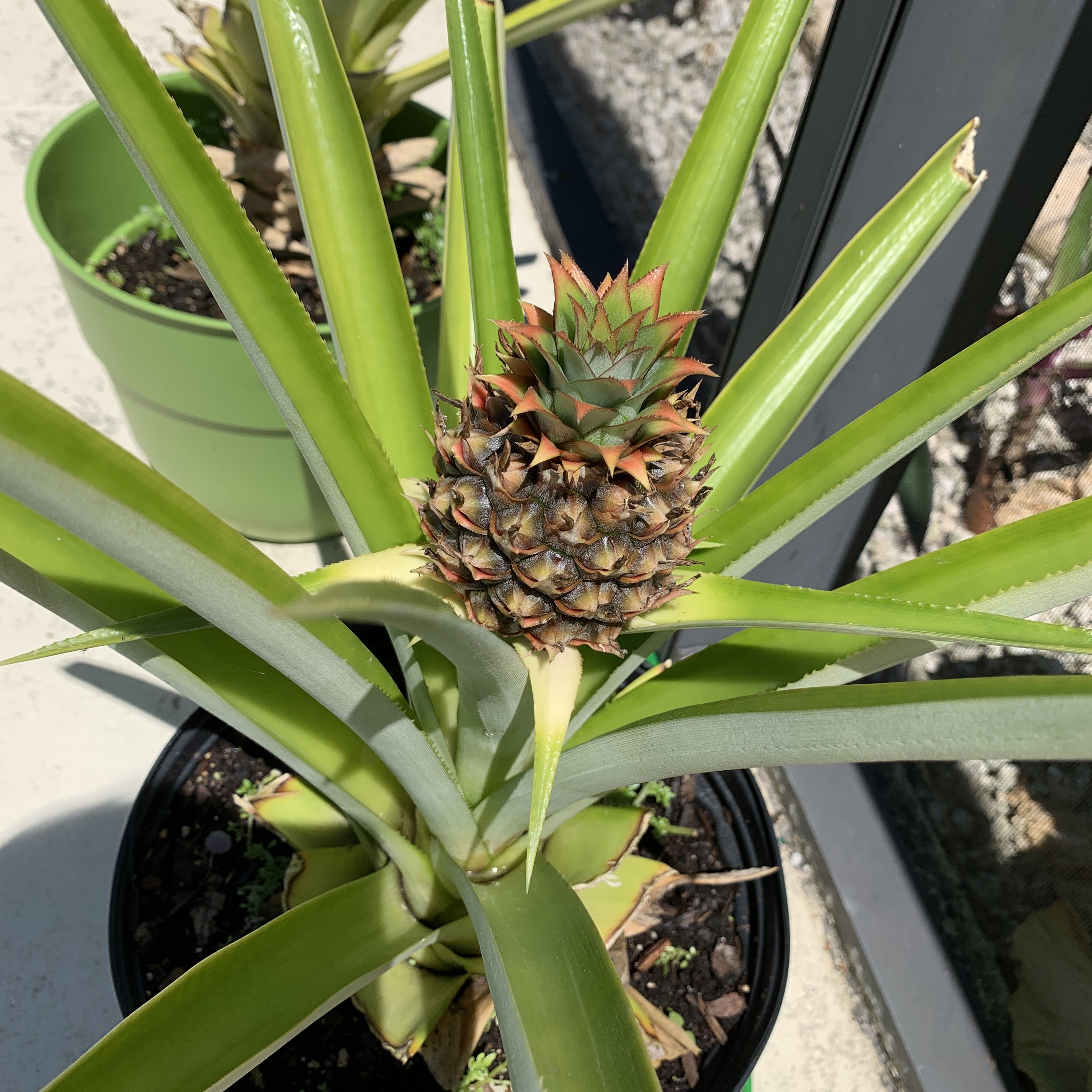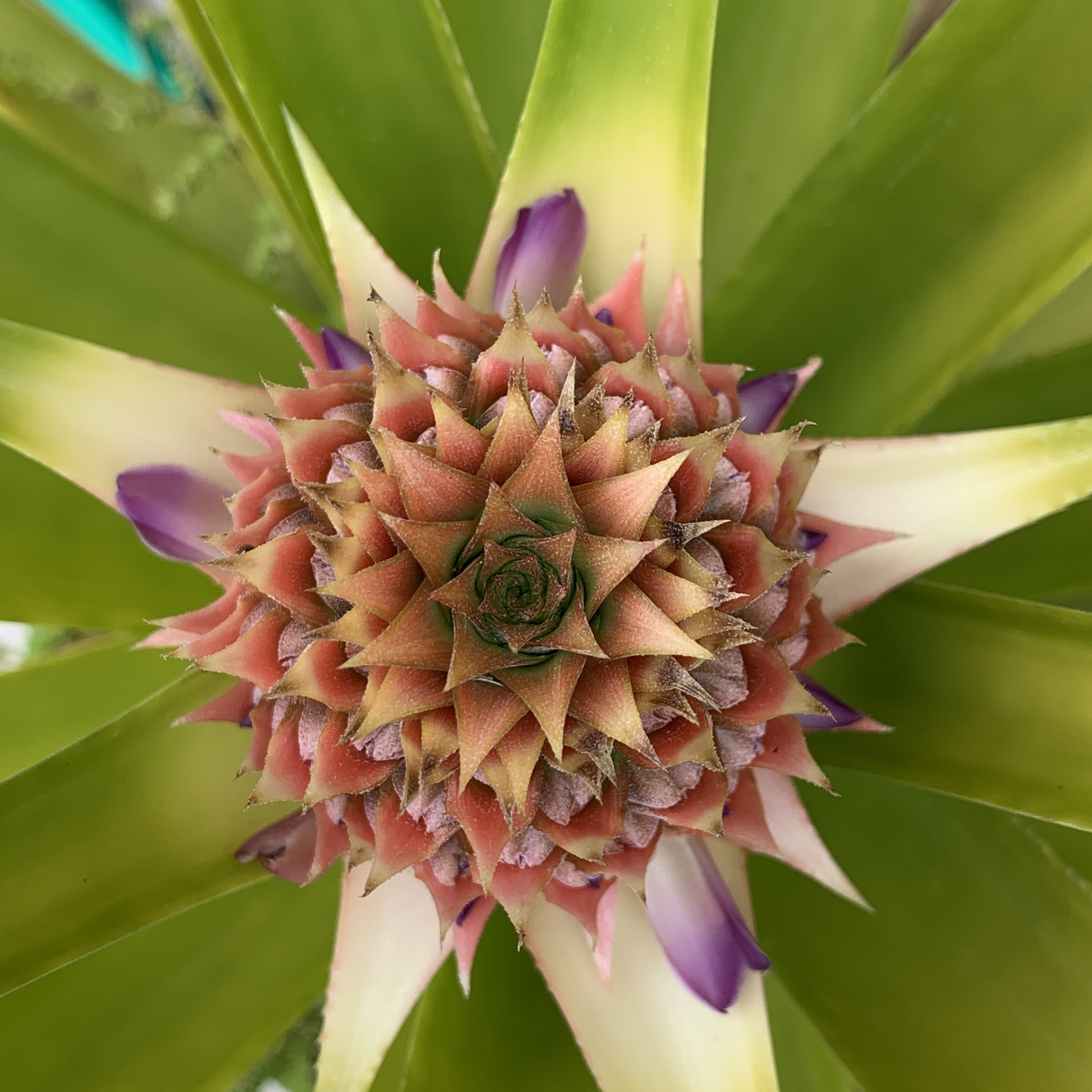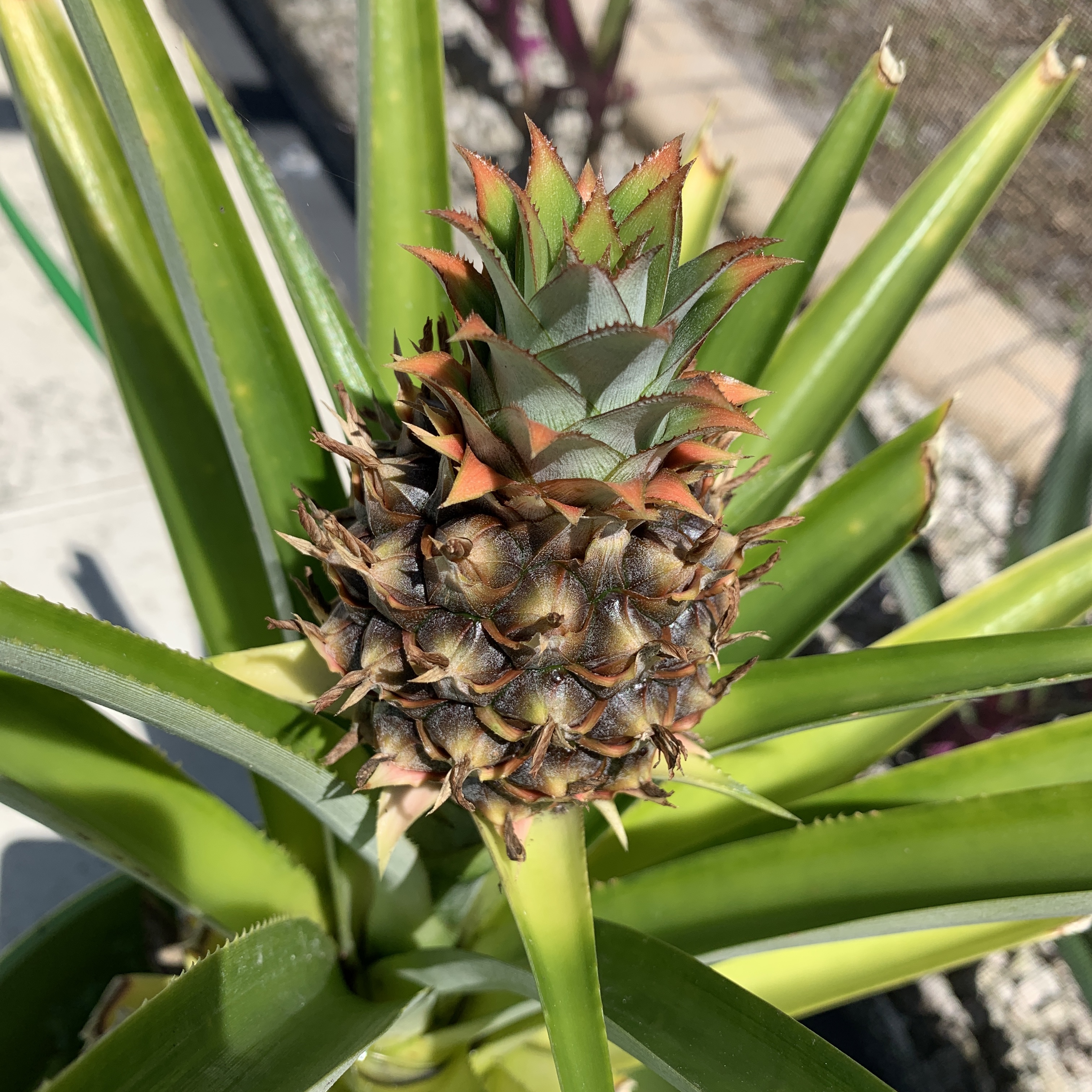 My mother and I have been growing pineapple plants for some time now, and have quite a few, of varying sizes. They are such beautiful plants, so architectural, and even better when they start fruiting.